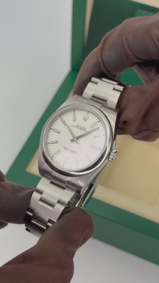 2019 Rolex Oyster Perpetual 39mm 114300 Stainless Steel White Dial