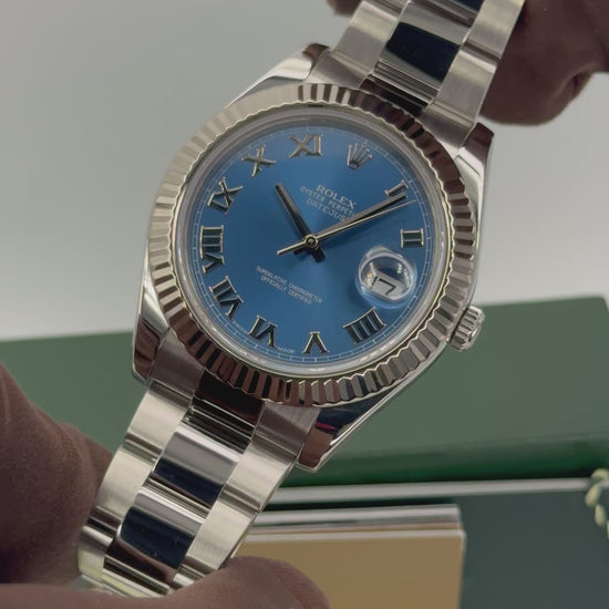 2010 Rolex Datejust II 41mm 116334 Oystersteel with Oyster Bracelet and 18kt White Gold Fluted Bezel and Blue Roman Numeral Dial