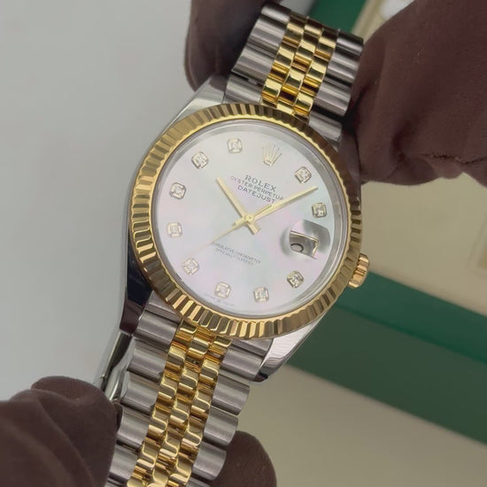 2020 Rolex Datejust 41mm 126333 Two-Tone "Yellow Rolesor" Oystersteel and 18kt Yellow Gold Fluted Bezel with Jubilee Bracelet and Mother of Pearl Diamond Dial
