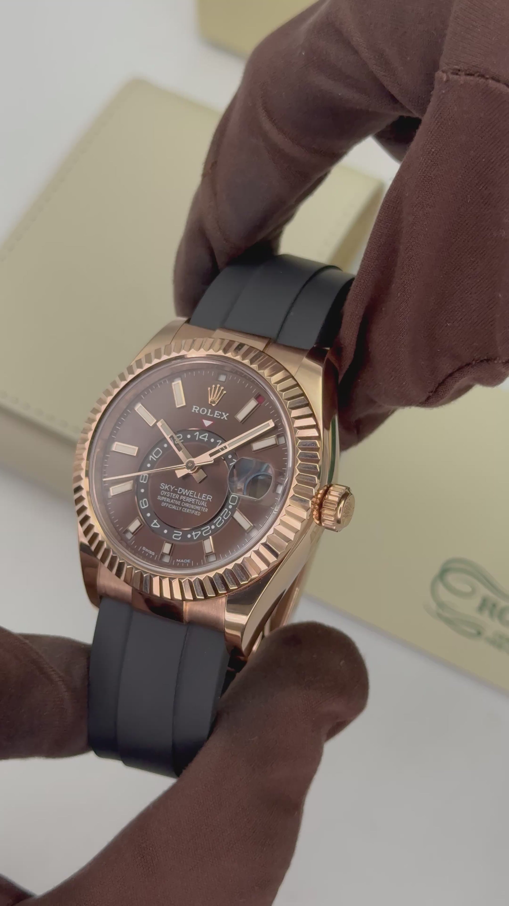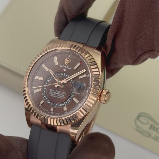2025 CPO Rolex Sky-Dweller 42mm 326235 Rose Gold Oysterflex Chocolate Dial (CPO)