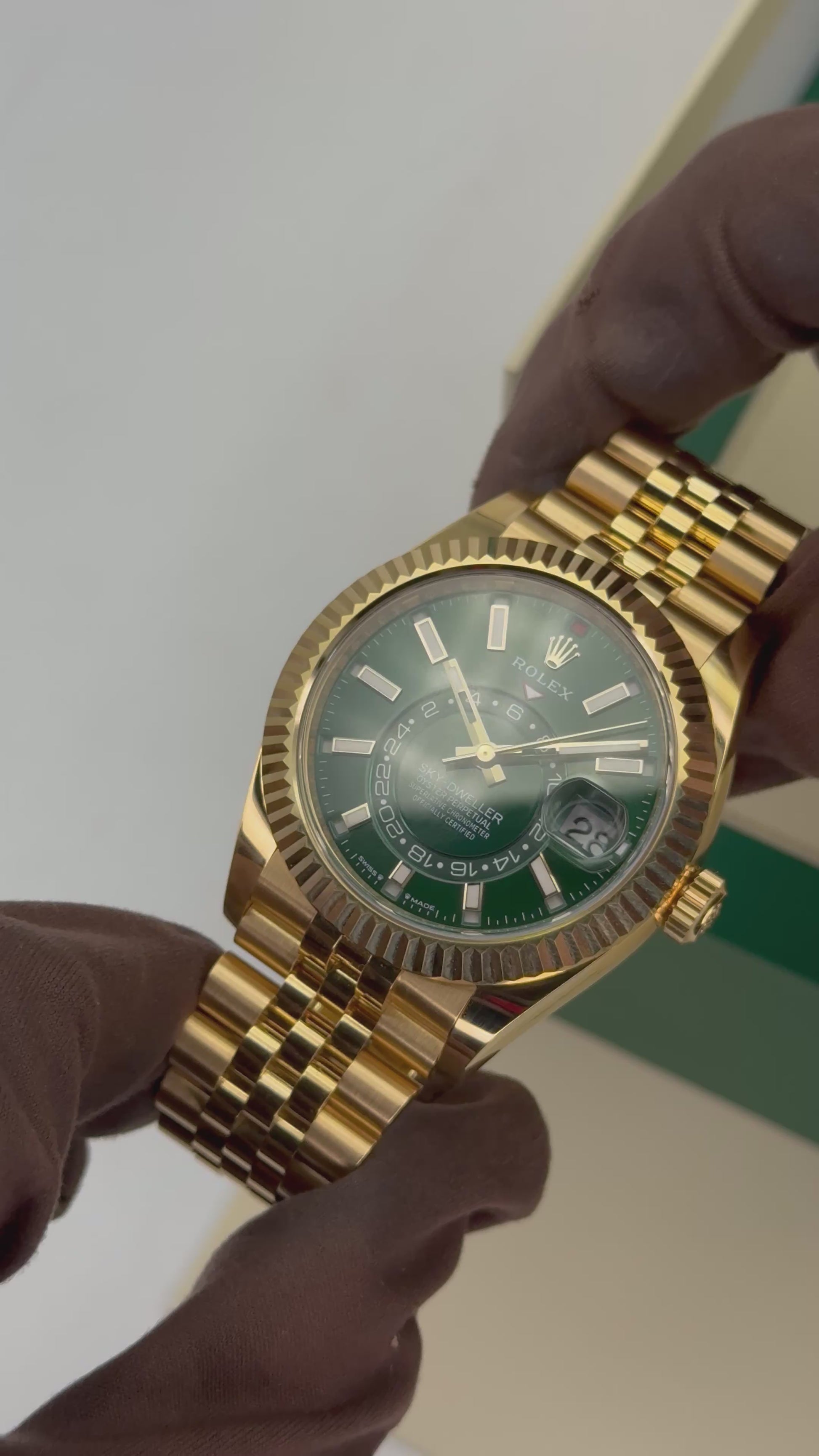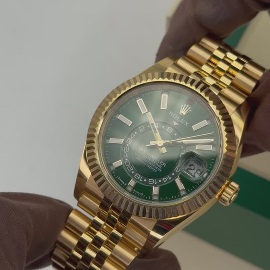 2025 Rolex Sky-Dweller 42mm 336938 18kt Yellow Gold Jubilee Bright Green Dial