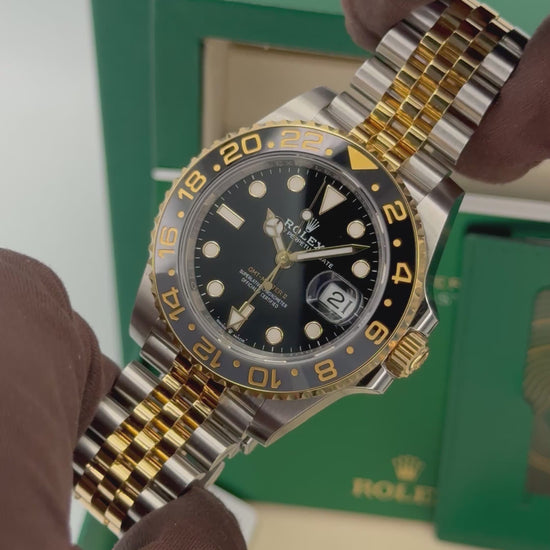 NEW 2025 Rolex GMT-Master II 40mm 126713GRNR Two-Tone "Yellow Rolesor" Stainless Steel and 18kt Yellow Gold with Jubilee Bracelet and Black Dial