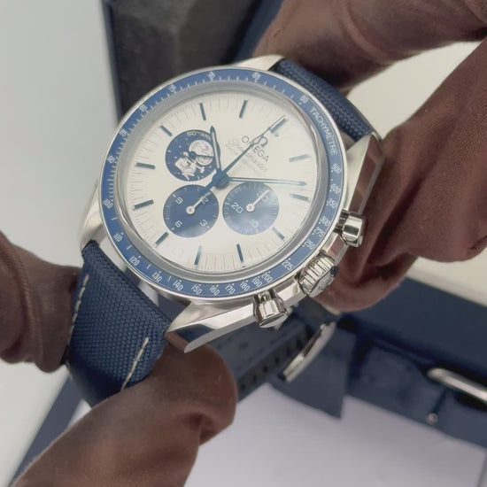 NEW 2026 Omega Speedmaster 42mm "Silver Snoopy Award" 50th Anniversary 310.32.42.50.02.001 Stainless Steel on Blue Nylon Fabric Strap