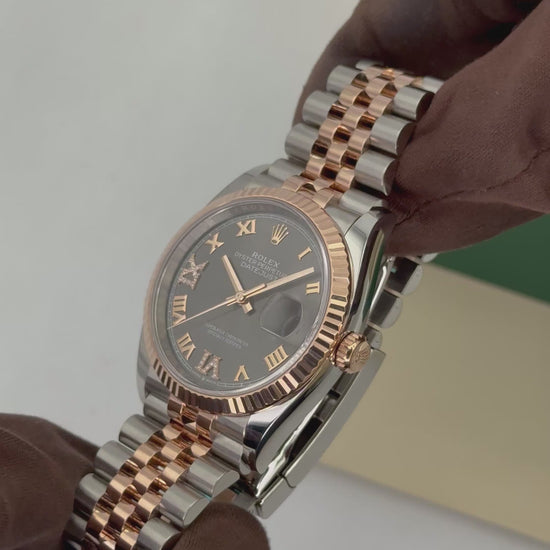 2023 Rolex Datejust 36mm 126231 Two-Tone Oystersteel and Everose Gold Jubilee Bracelet with a Slate Rhodium Grey Dial with Diamonds on 6 & 9