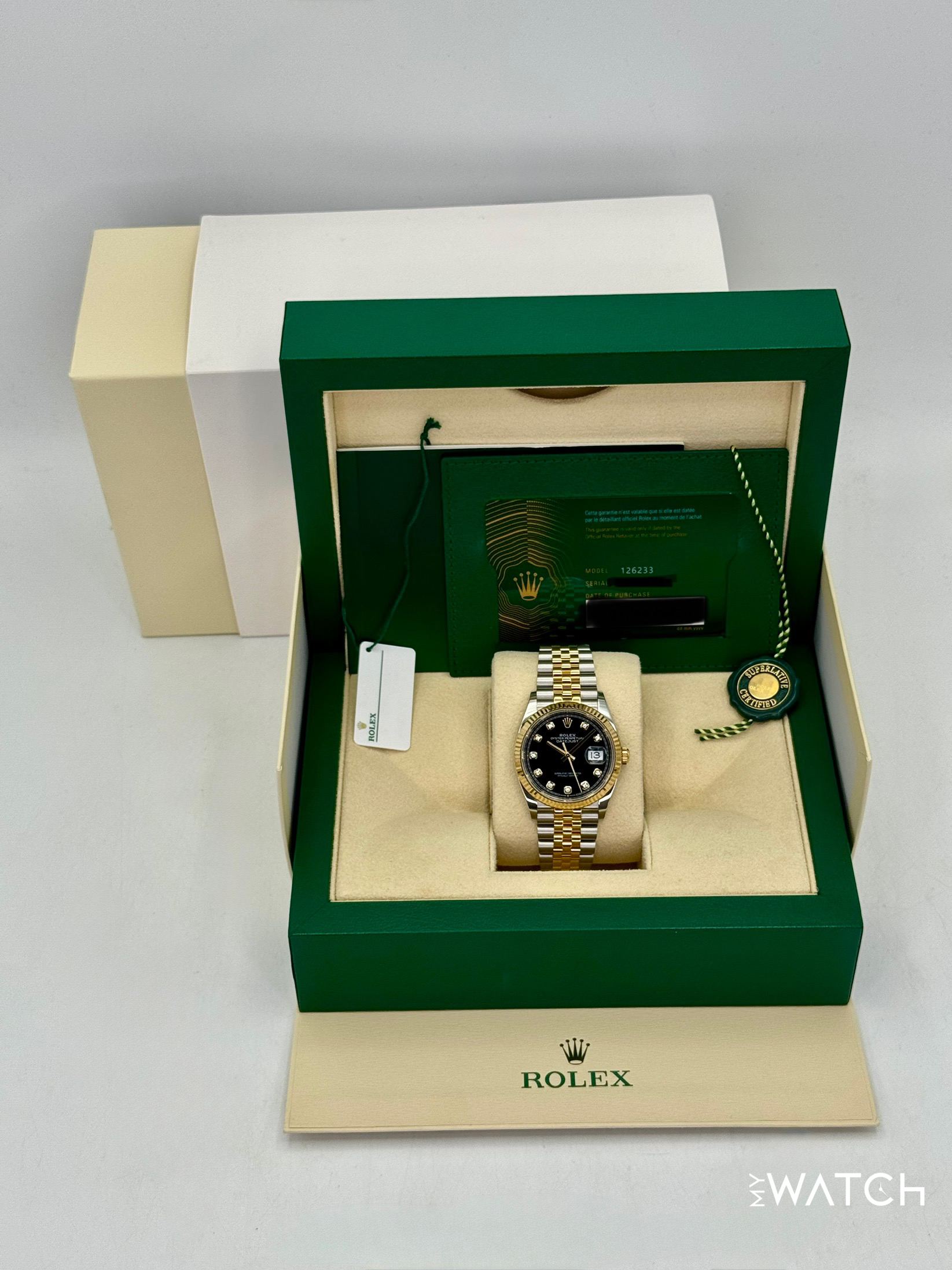 2024 Rolex Datejust 36mm 126233 Two-Tone Jubilee Black Diamond Dial