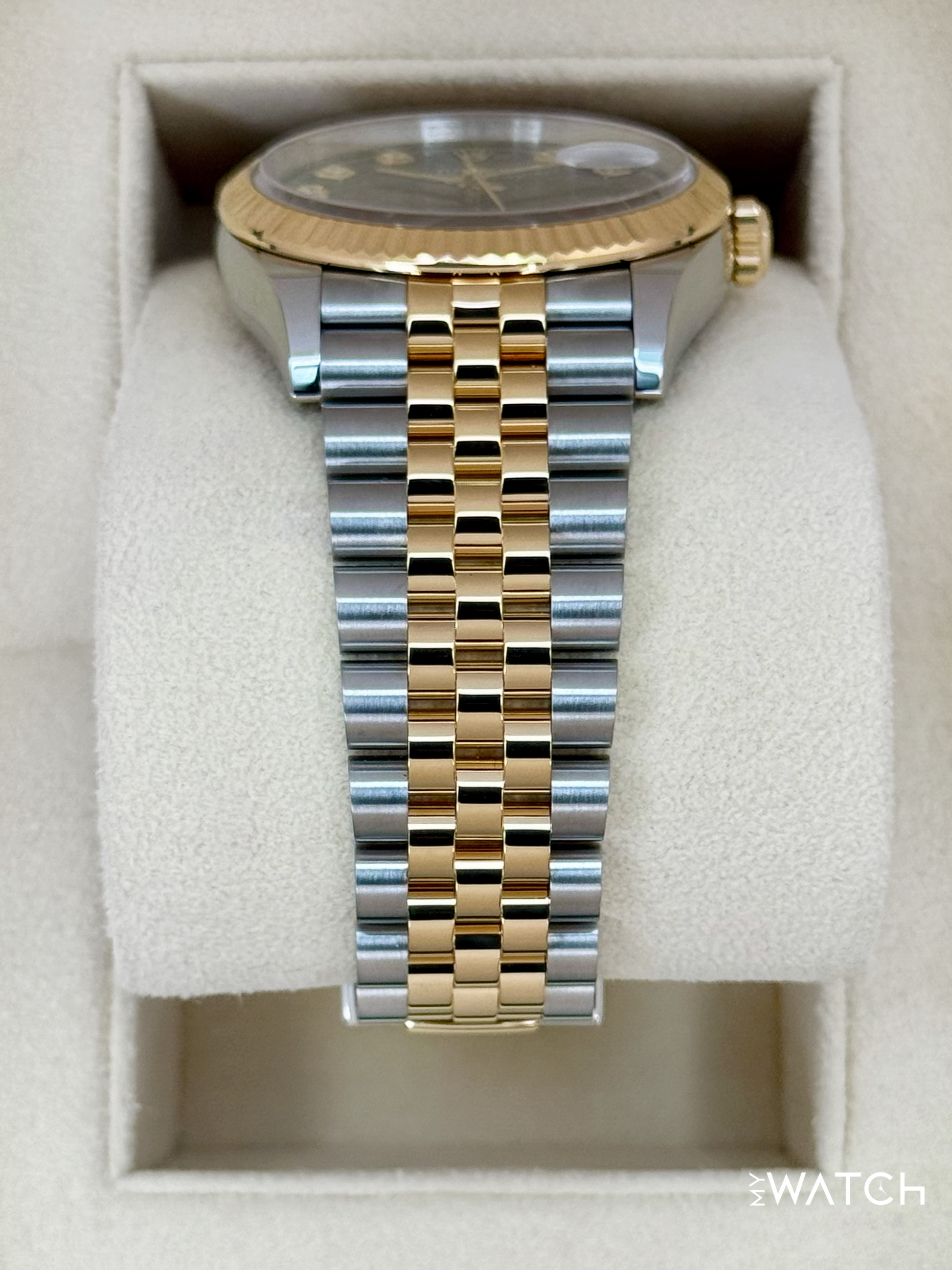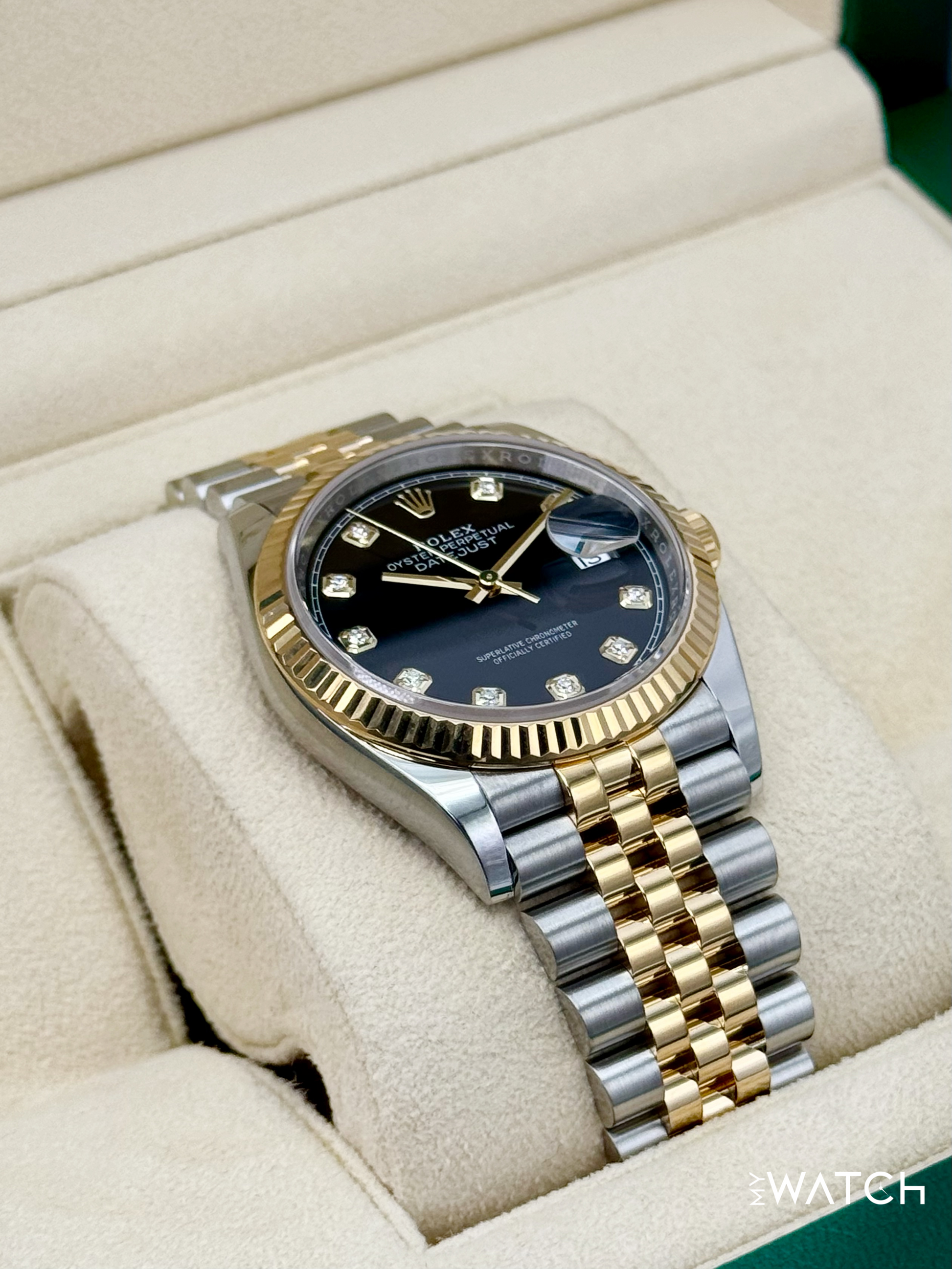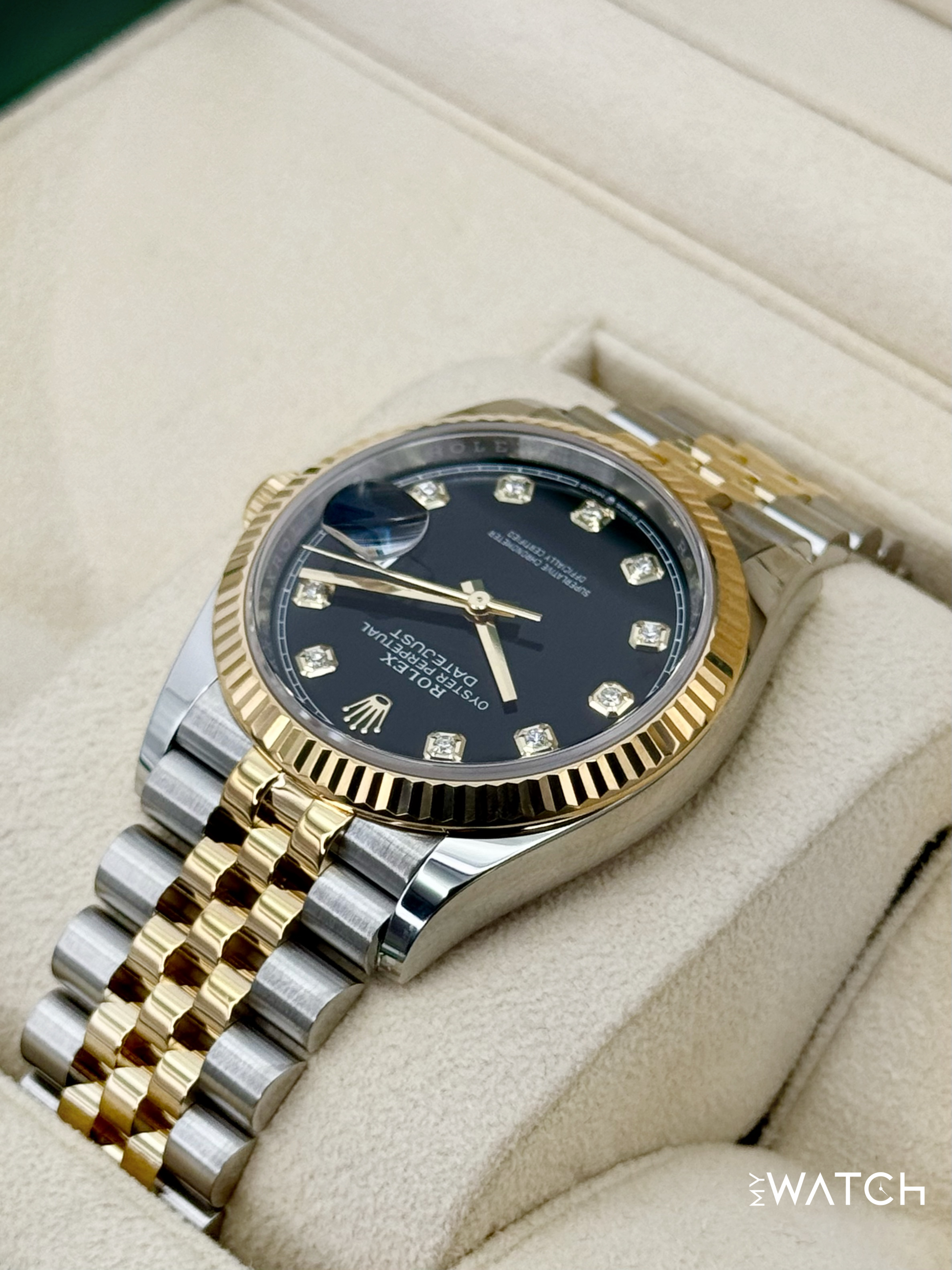 2024 Rolex Datejust 36mm 126233 Two-Tone "Yellow Rolesor" Stainless Steel and 18kt Yellow Gold Fluted Bezel Jubilee Bracelet Black Diamond Dial