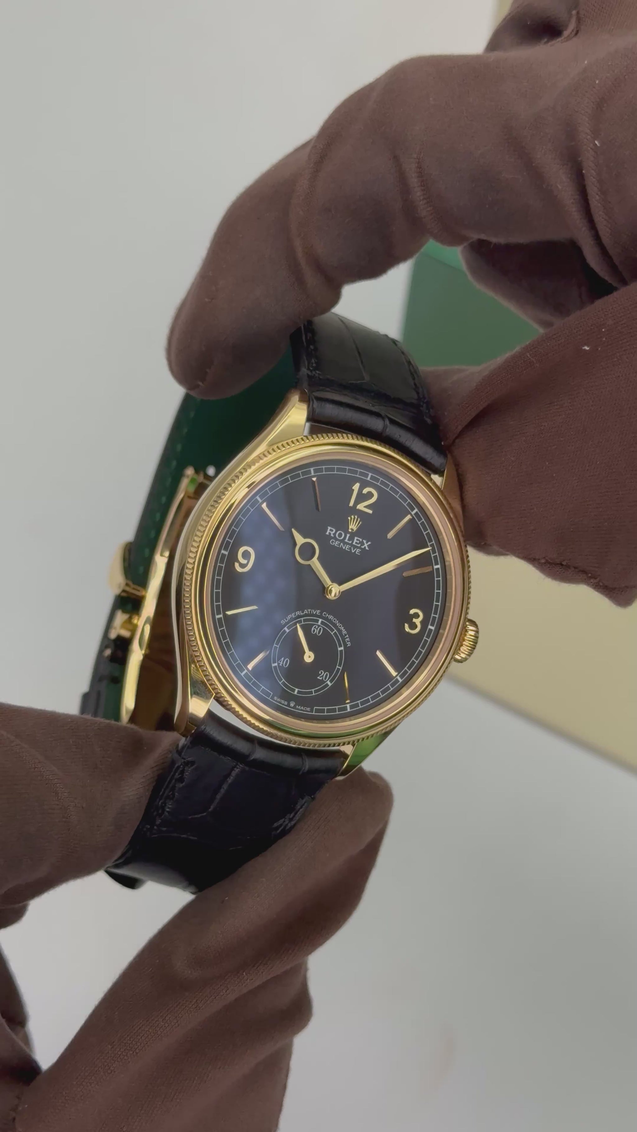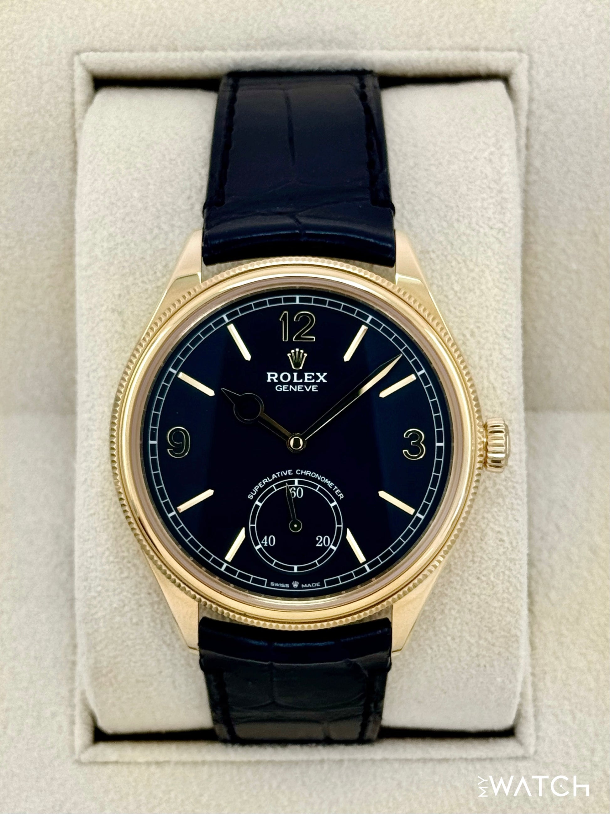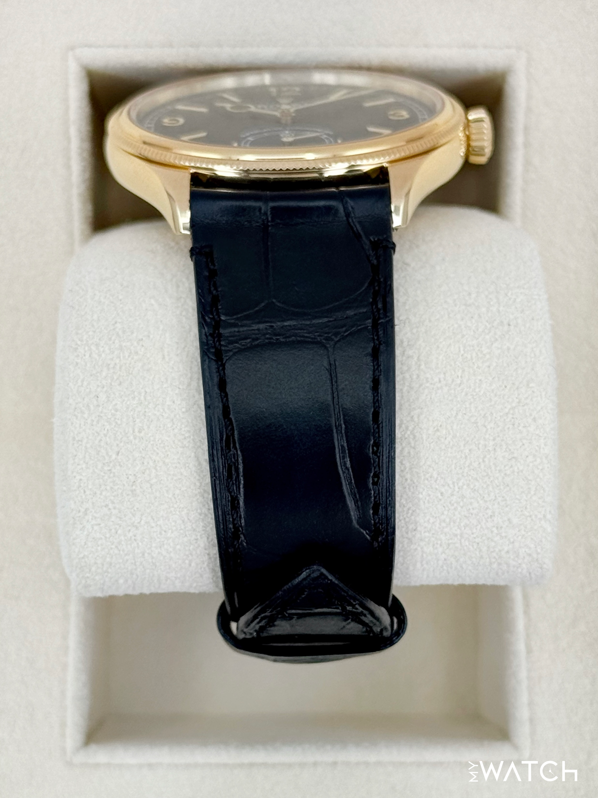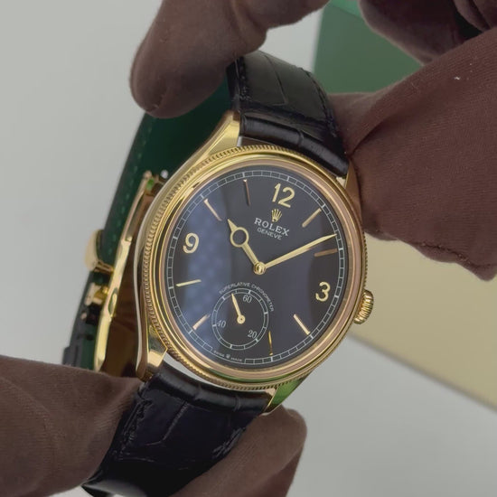 2025 Rolex 1908 39mm 52508 18kt Yellow Gold Black Alligator Leather Strap Black Dial