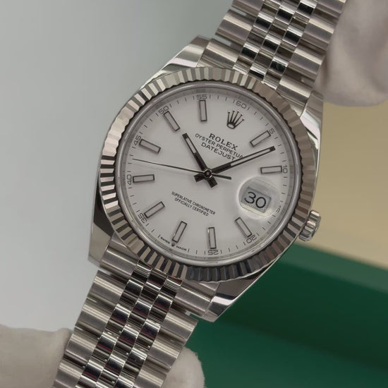NEW 2025 Rolex Datejust 41mm 126334 Stainless Steel and 18K White Gold Fluted Bezel Jubilee Bracelet White Dial