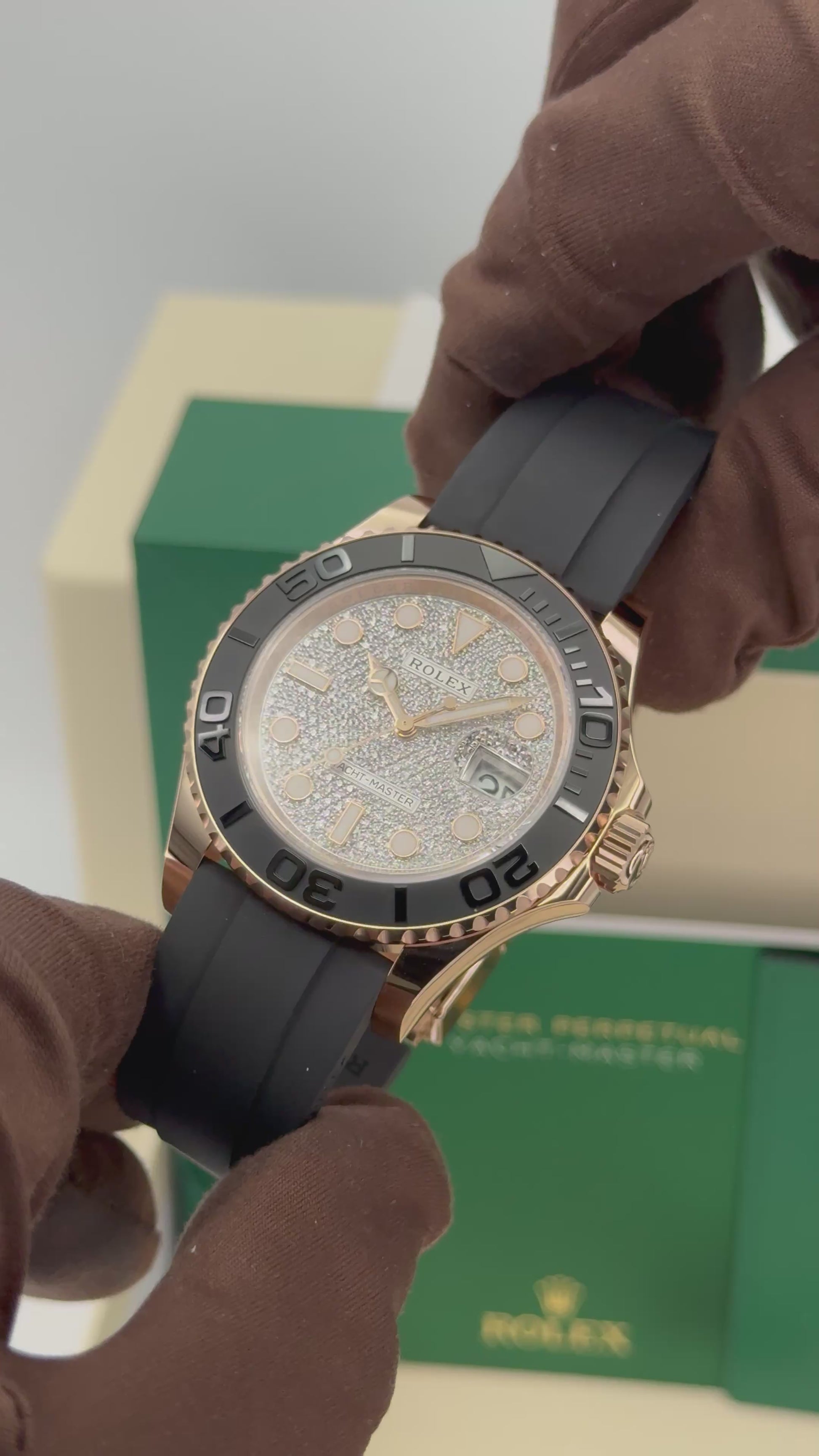 New 2025 Rolex Yacht-Master 40mm 126655 18kt Rose Gold Oysterflex Factory Diamond Pave Dial