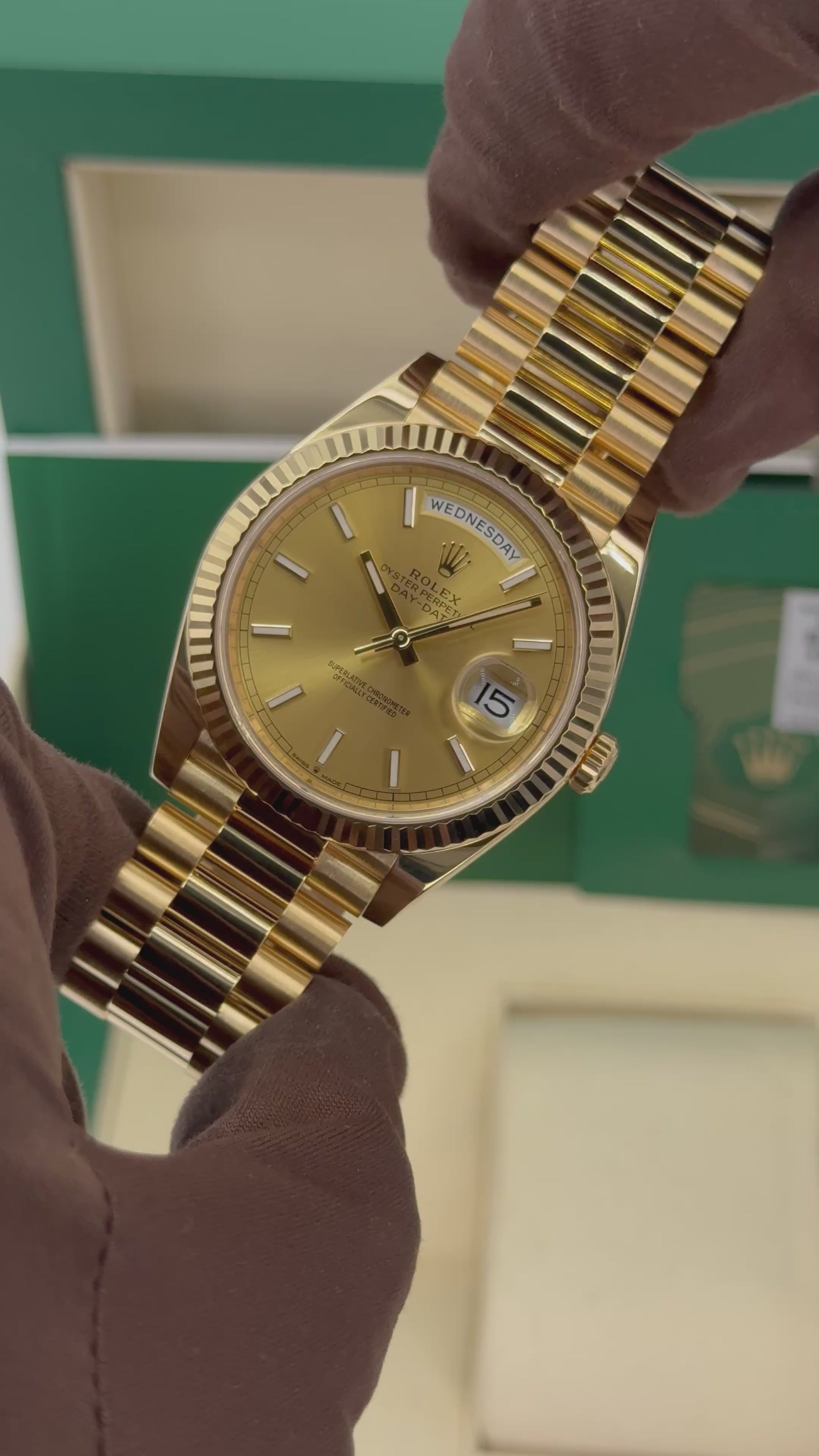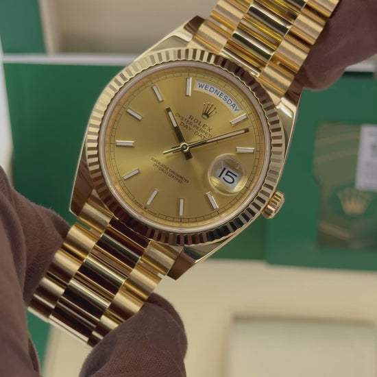 2020 Rolex Day-Date 40mm 228238 Presidential 18kt Yellow Gold Champagne Stick Dial