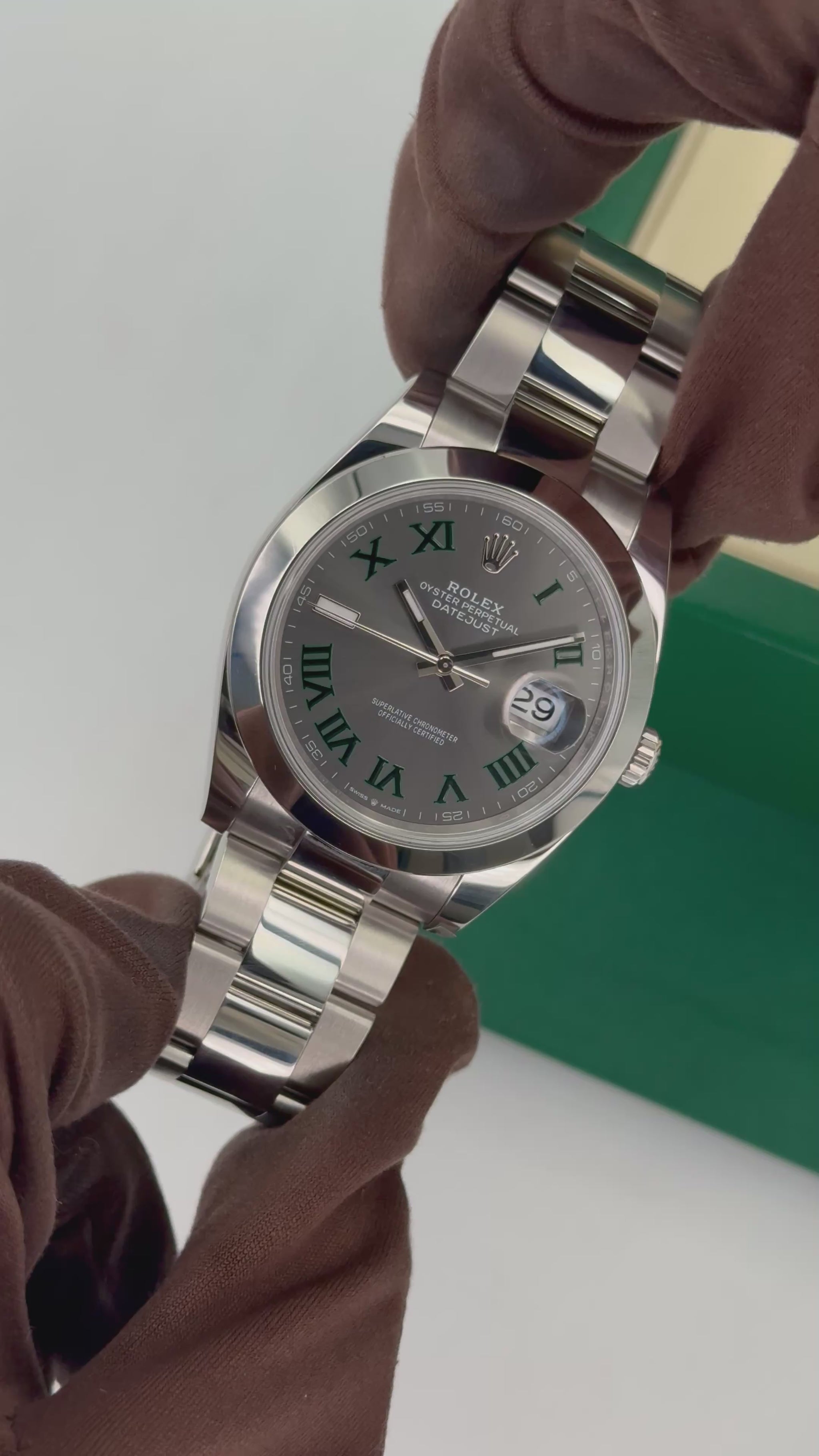 NEW 2025 Rolex Datejust 41mm 126300 Stainless Steel Oyster Bracelet Wimbledon Dial Smooth Bezel