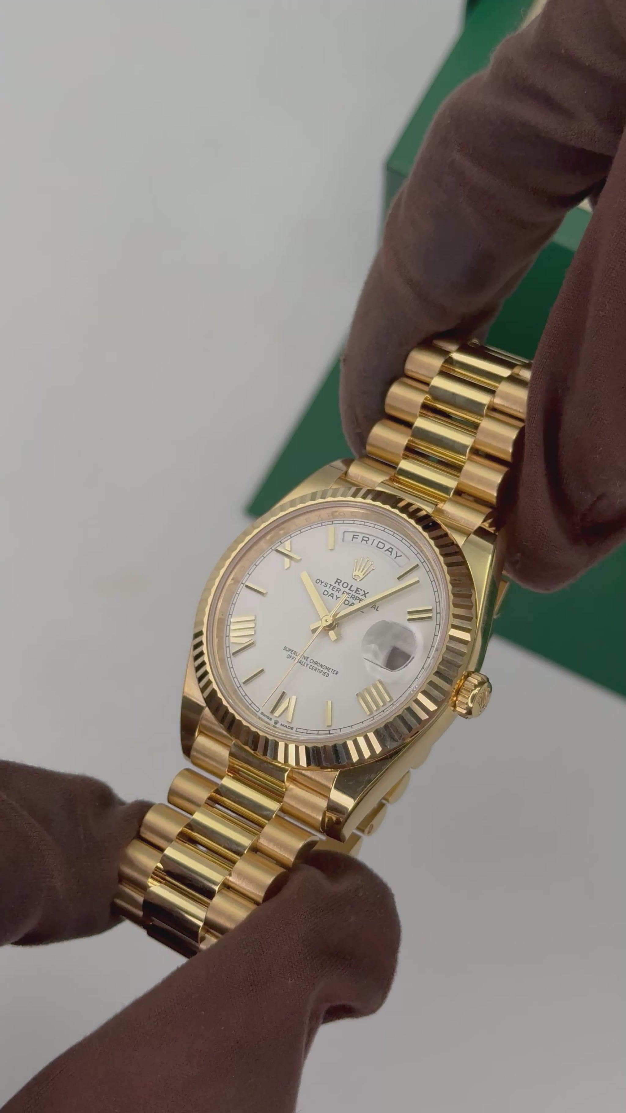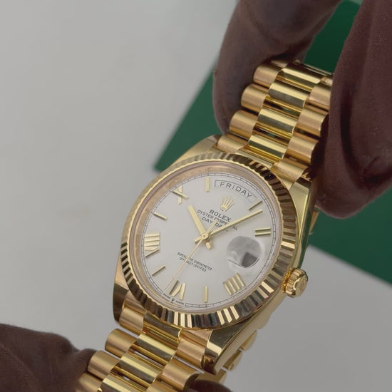 NEW 2025 Rolex Day-Date 40mm 228238 18K Yellow Gold Presidential Bracelet White Roman Numeral Dial Fluted Bezel