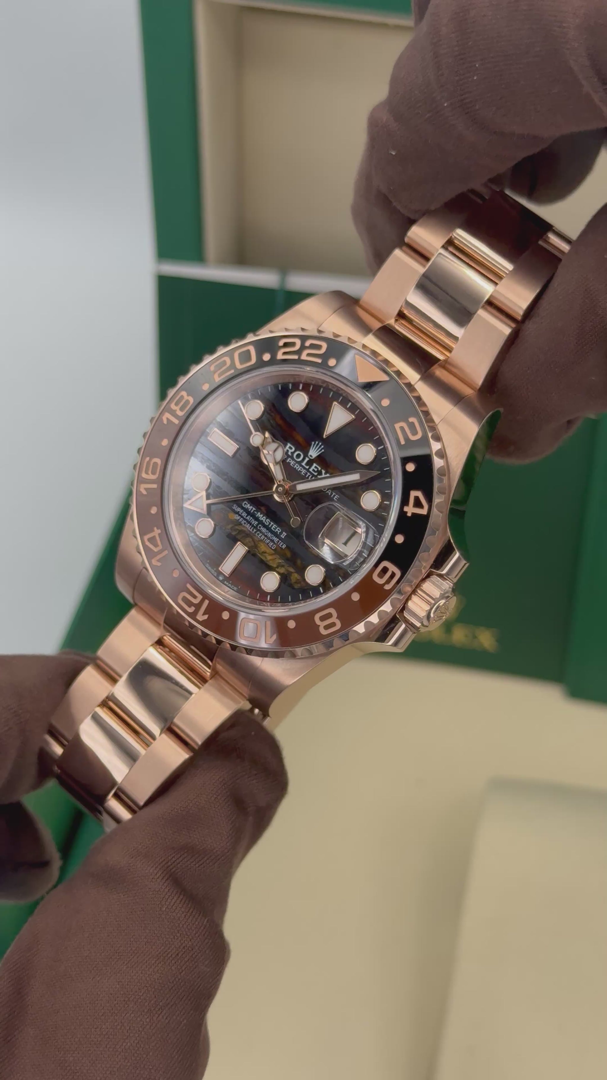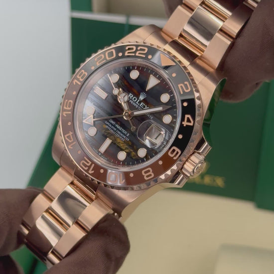NEW 2025 Rolex GMT-Master II "Rootbeer" 40mm 126715CHNR 18k Rose Gold Tiger Iron Dial Oyster Bracelet