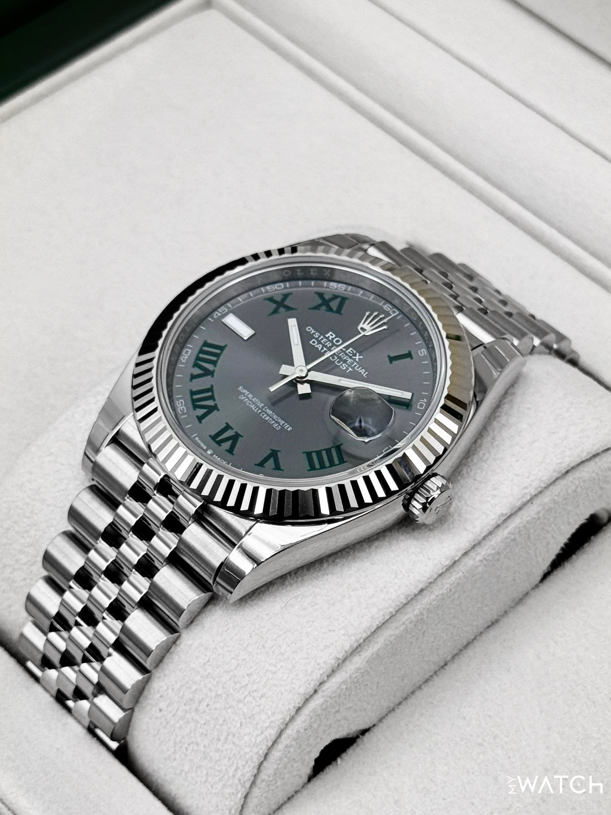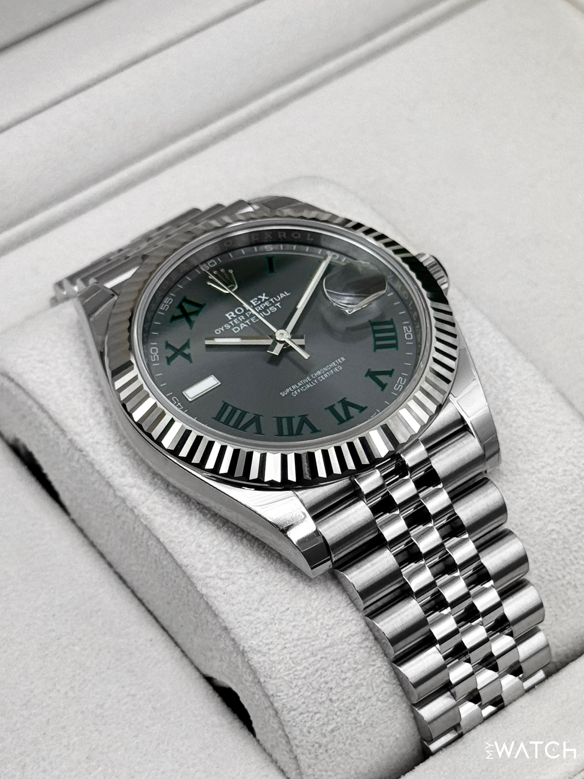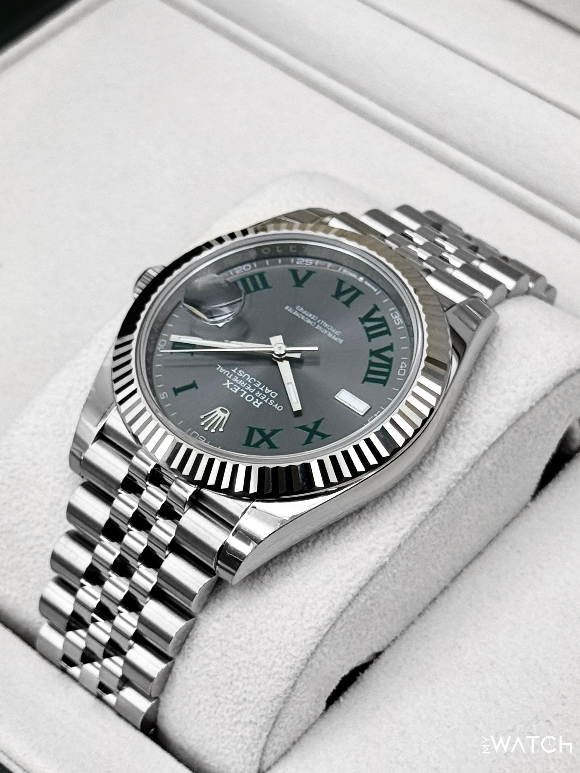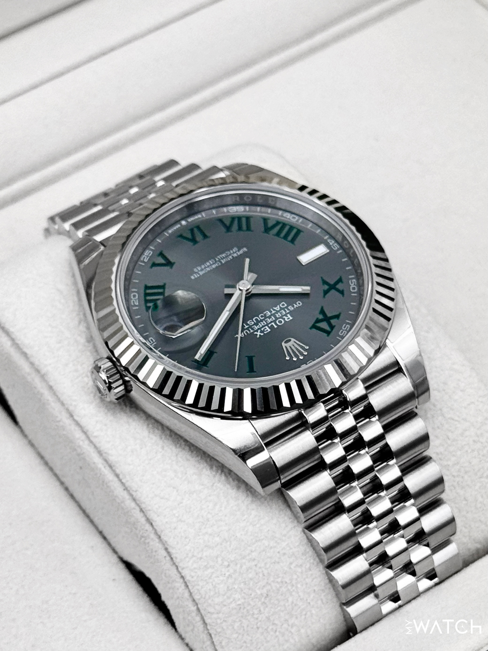NEW 2026 Rolex Datejust 41mm 126334 Stainless Steel and 18kt White Gold Fluted Bezel Jubilee Bracelet Wimbledon Dial