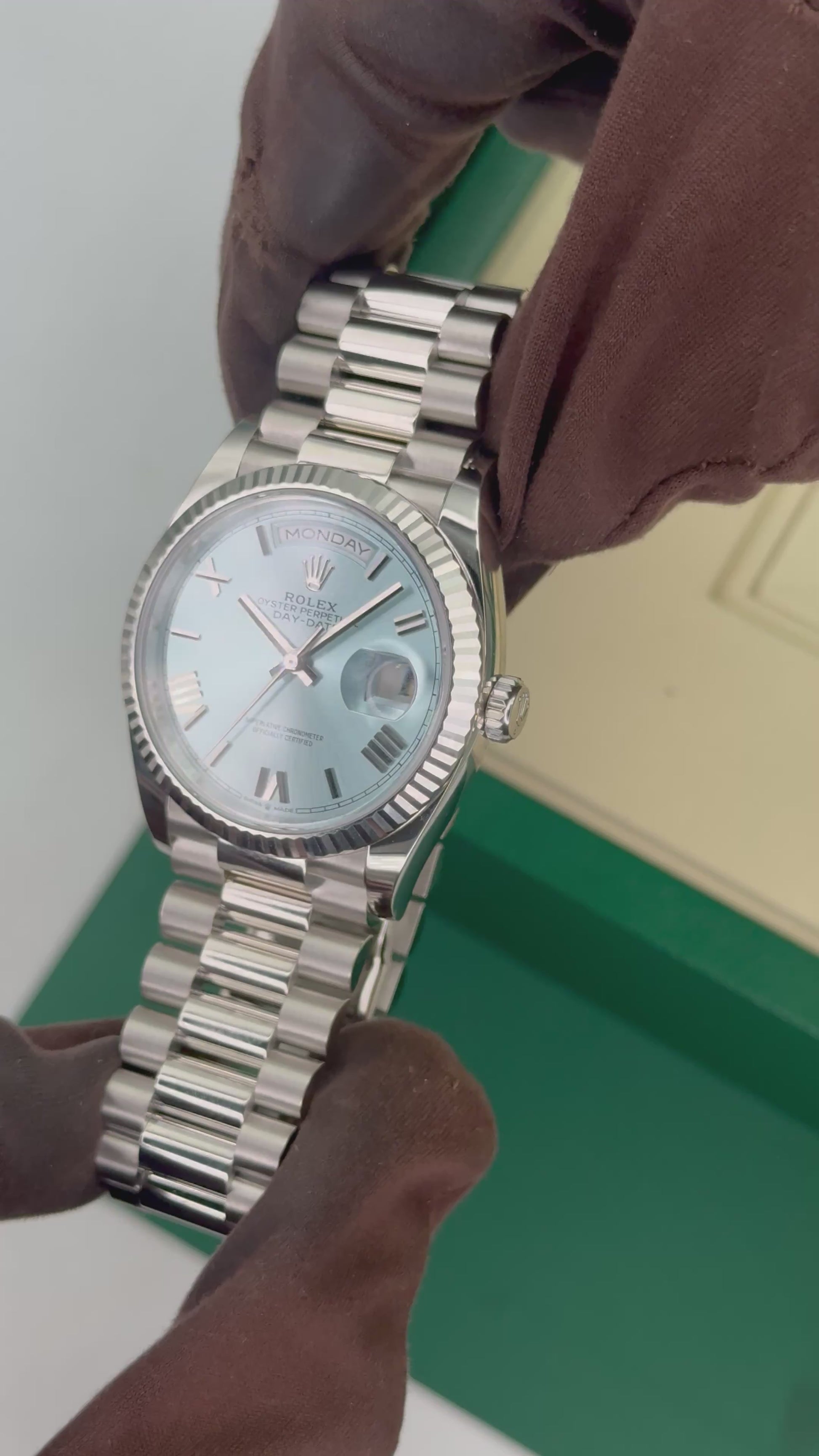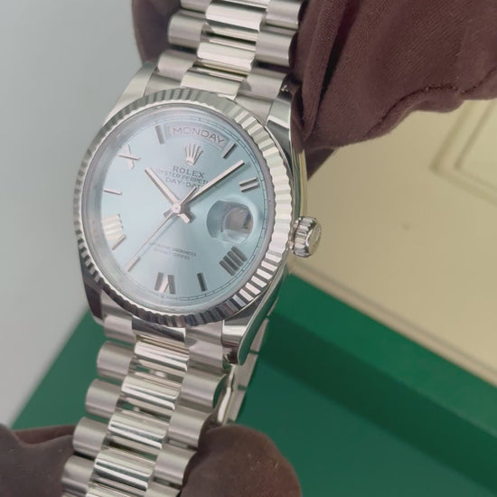 NEW 2026 Rolex Day-Date Platinum 36mm 128236 Fluted Bezel President Bracelet Ice Blue Roman Numeral Dial